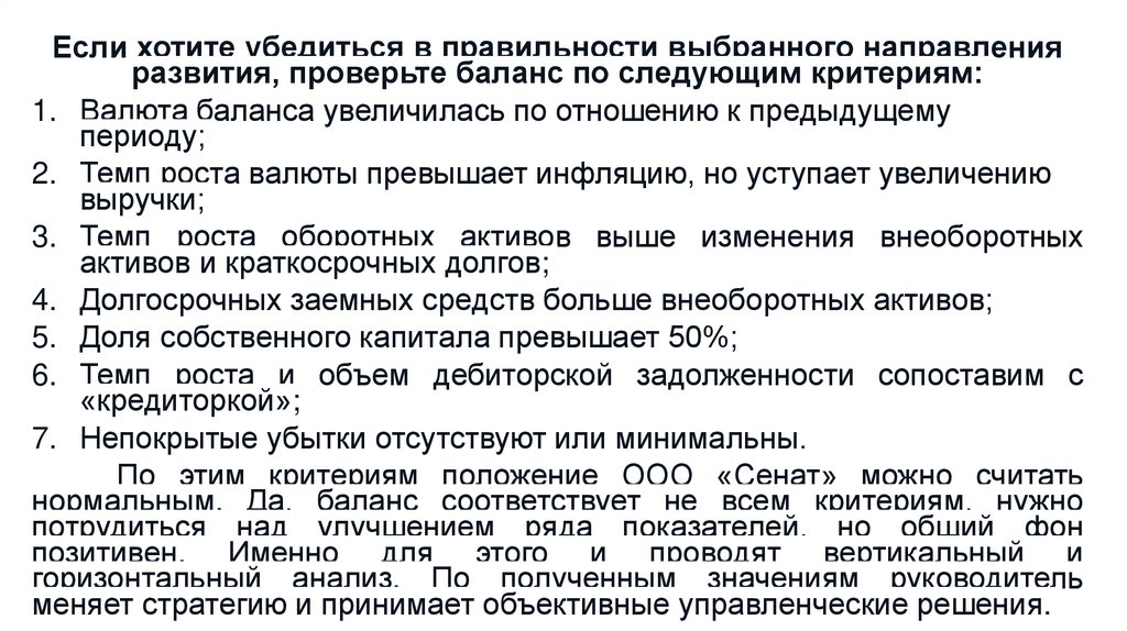 Если хотите убедиться в правильности выбранного направленияразвития, проверьте баланс по следующим критериям: