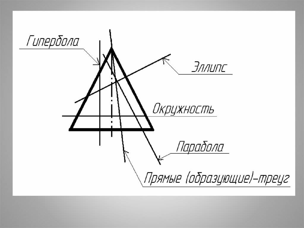 • При пересечении поверхности или какойлибо геометрической фигуры плоскостьюполучается фигура, которая называется