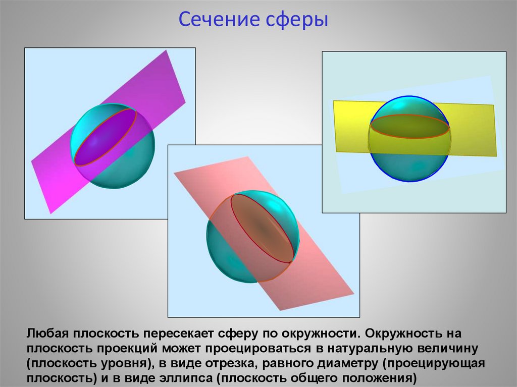 Плоские сечения поверхности СФЕРЫСЕЧЕНИЕ СФЕРЫ - ОКРУЖНОСТЬ ПРИ