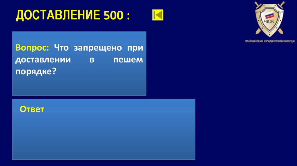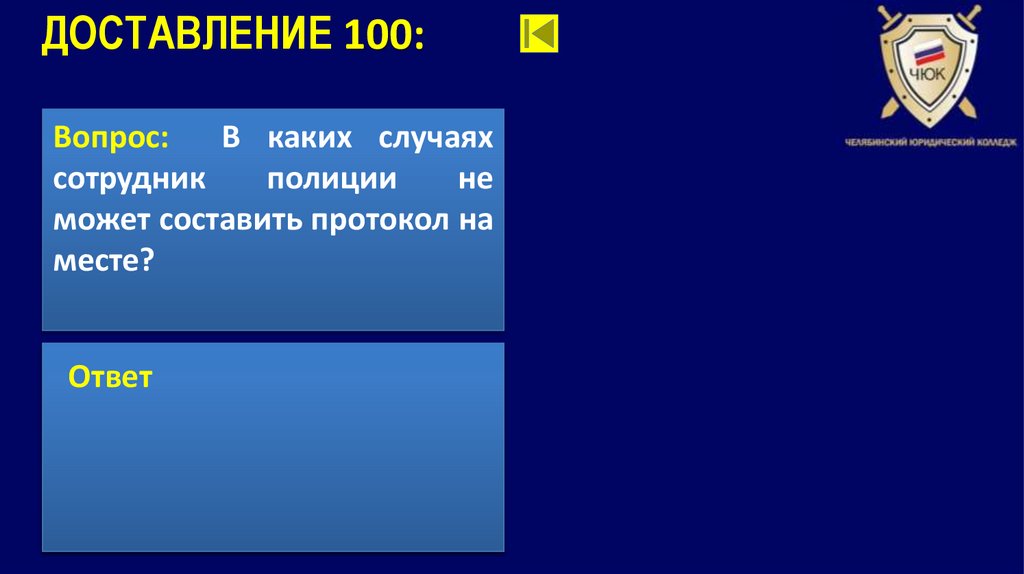 ДОСТАВЛЕНИЕ 100:Вопрос: