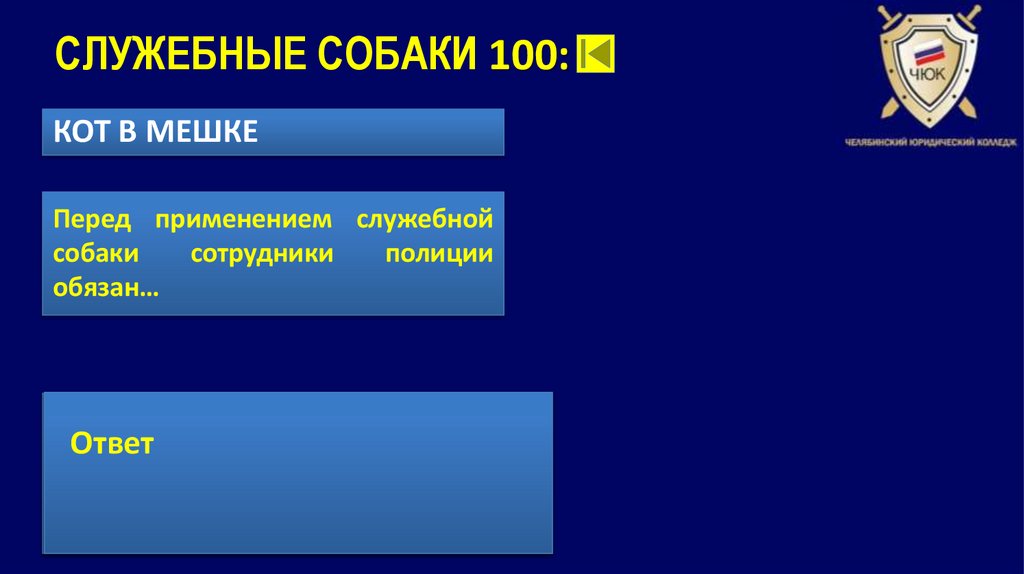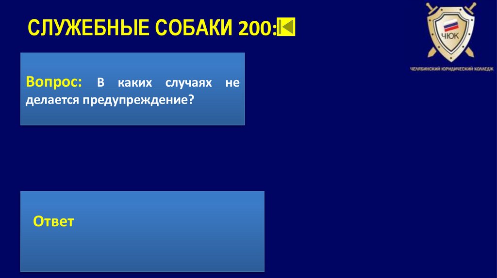 СЛУЖЕБНЫЕ СОБАКИ 200:Вопрос: В каких случаях не