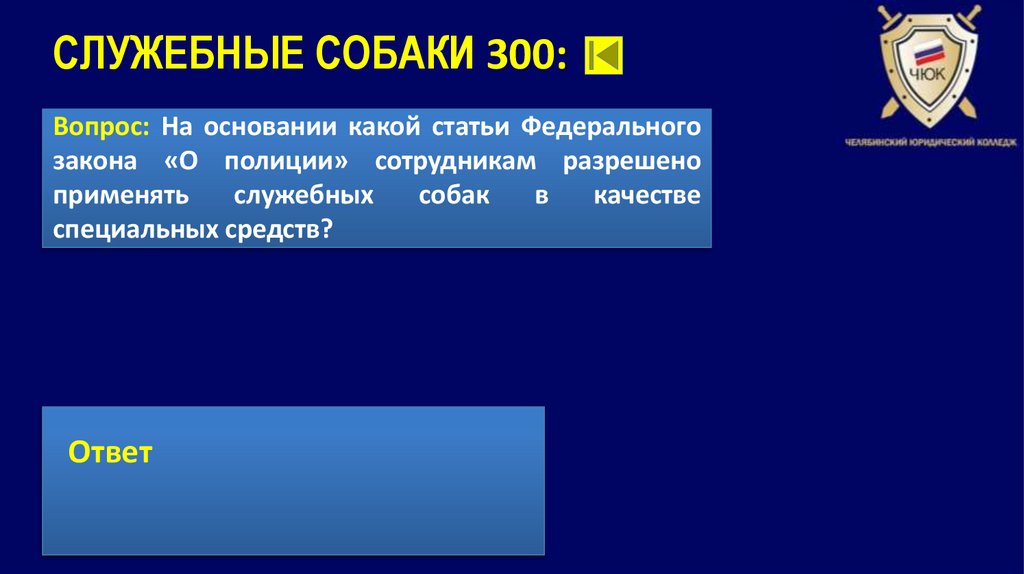 СЛУЖЕБНЫЕ СОБАКИ 300:Вопрос: На основании какой статьи Федерального
