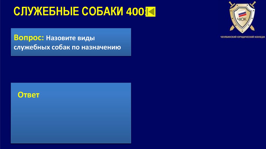 СЛУЖЕБНЫЕ СОБАКИ 400:Вопрос: Назовите виды