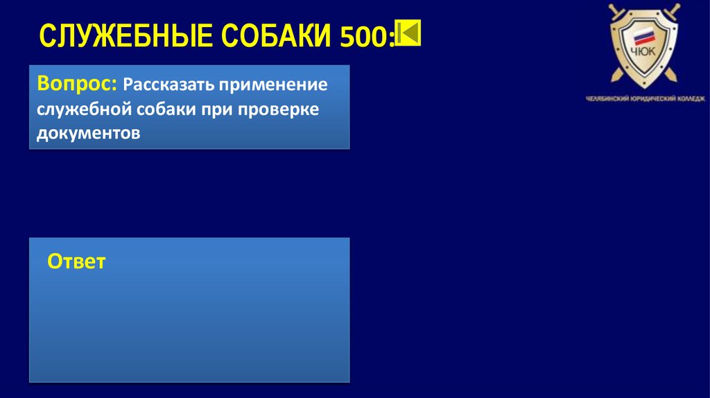 СЛУЖЕБНЫЕ СОБАКИ 500:Вопрос: Рассказать применение