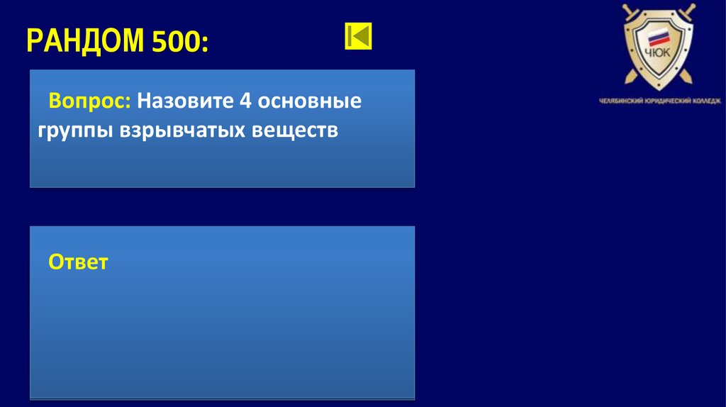 РАНДОМ 500:Вопрос: Назовите 4 основные