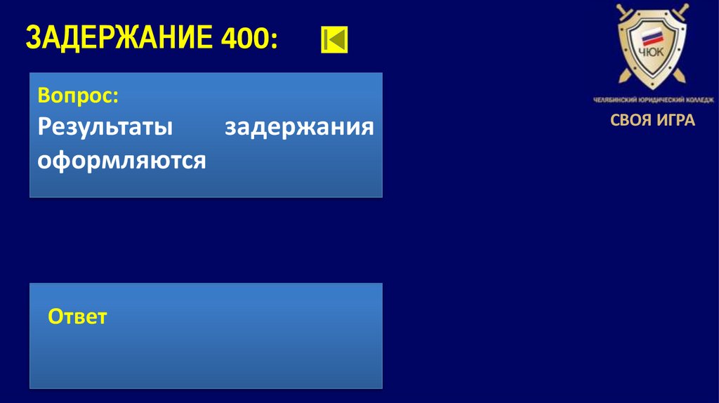ЗАДЕРЖАНИЕ 400:Вопрос: