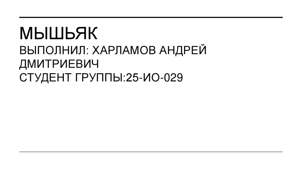 1. Мышьяк выполнил: харламов андрей дмитриевич студент группы:25-ио-029