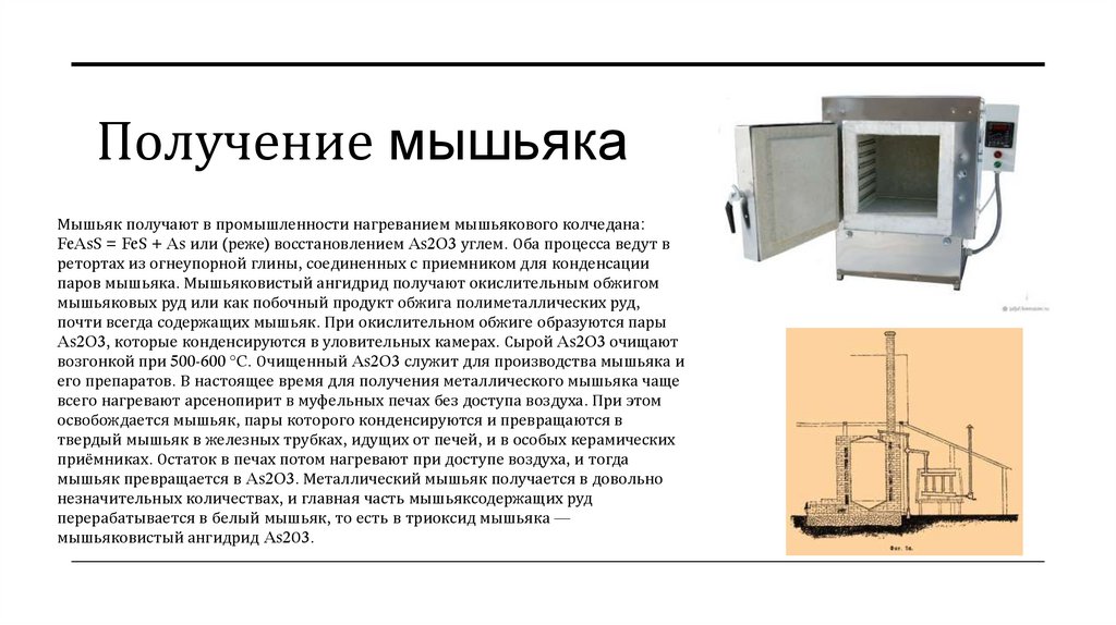 перерабатывается в белый мышьяк, то есть в триоксид мышьяка —