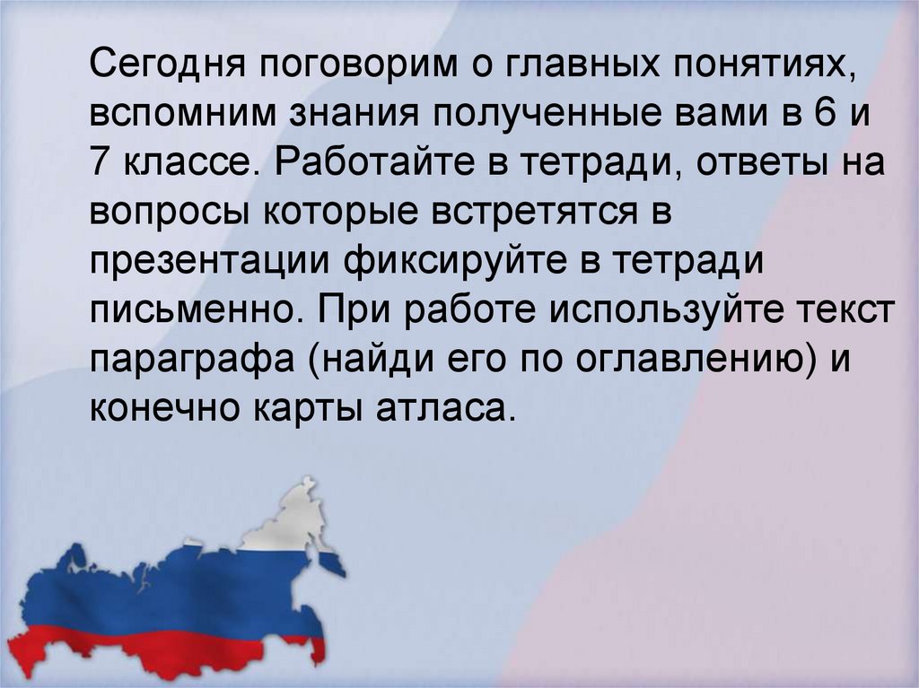 Сегодня поговорим о главных понятиях,вспомним знания полученные вами в 6 и