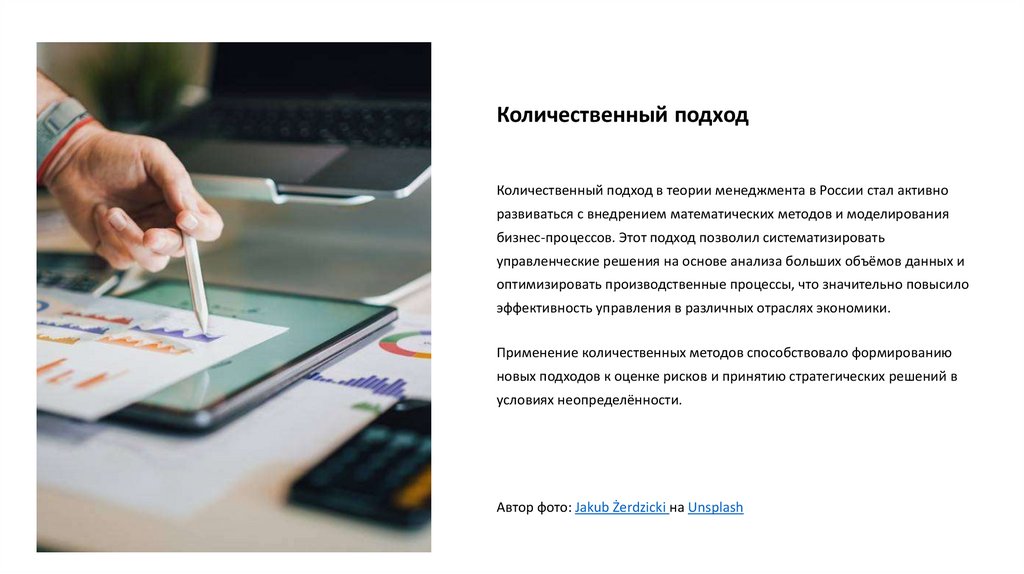 Количественный подходКоличественный подход в теории менеджмента в России стал активно