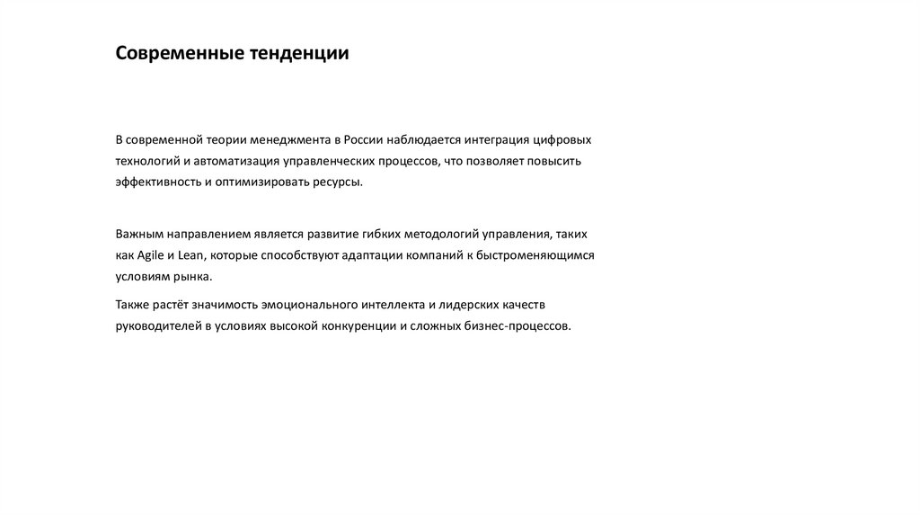 Современные тенденцииВ современной теории менеджмента в России наблюдается интеграция цифровых