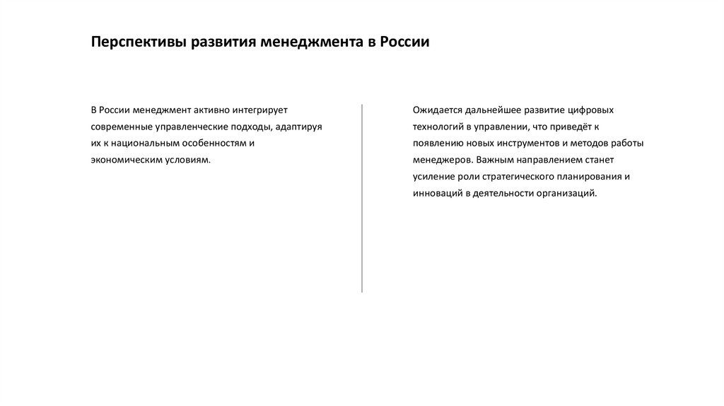 Перспективы развития менеджмента в РоссииВ России менеджмент активно интегрирует