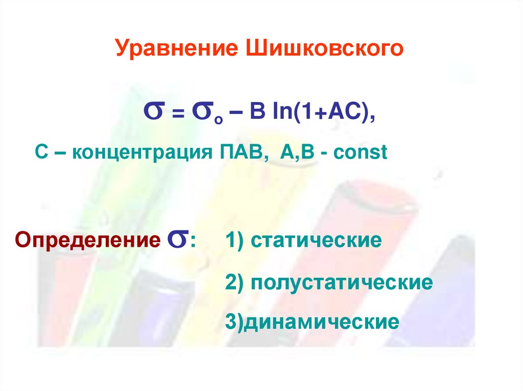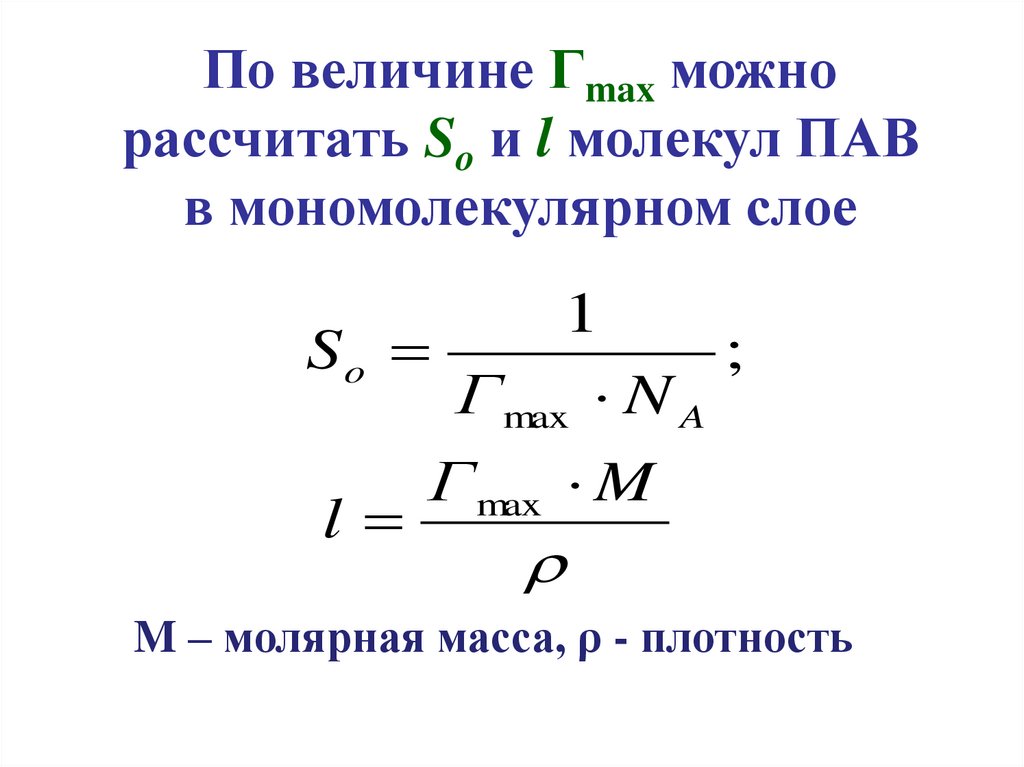 По величине Гmax можнорассчитать So и l молекул ПАВ