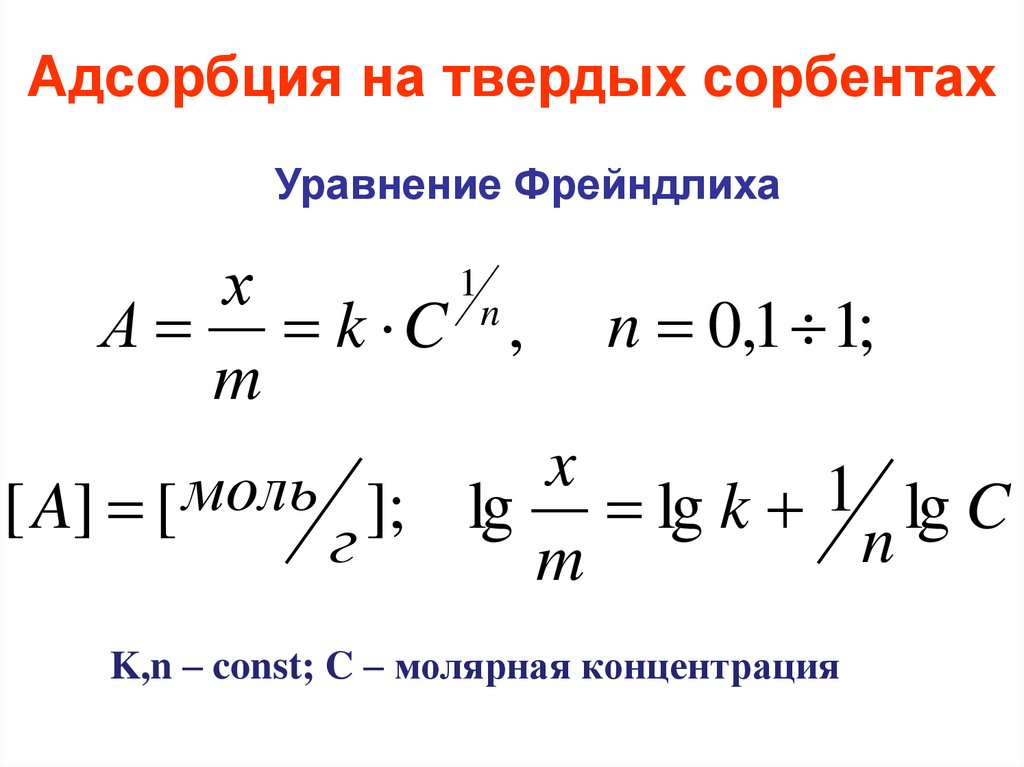 Адсорбция на твердых сорбентахУравнение Фрейндлиха