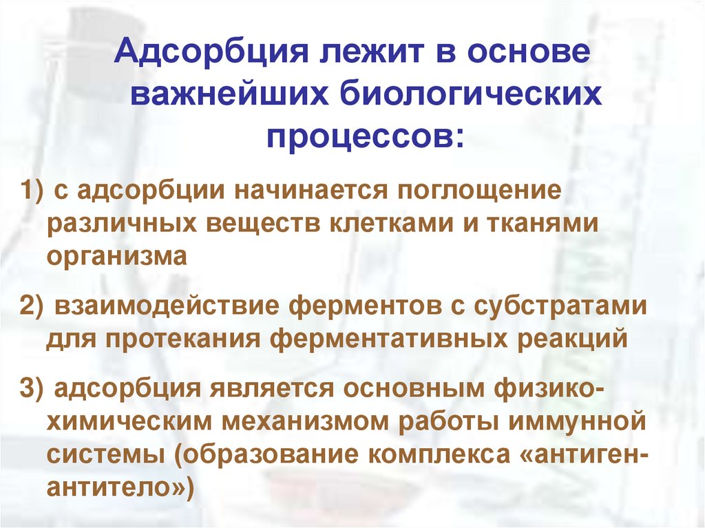 3) адсорбция является основным физикохимическим механизмом работы иммунной