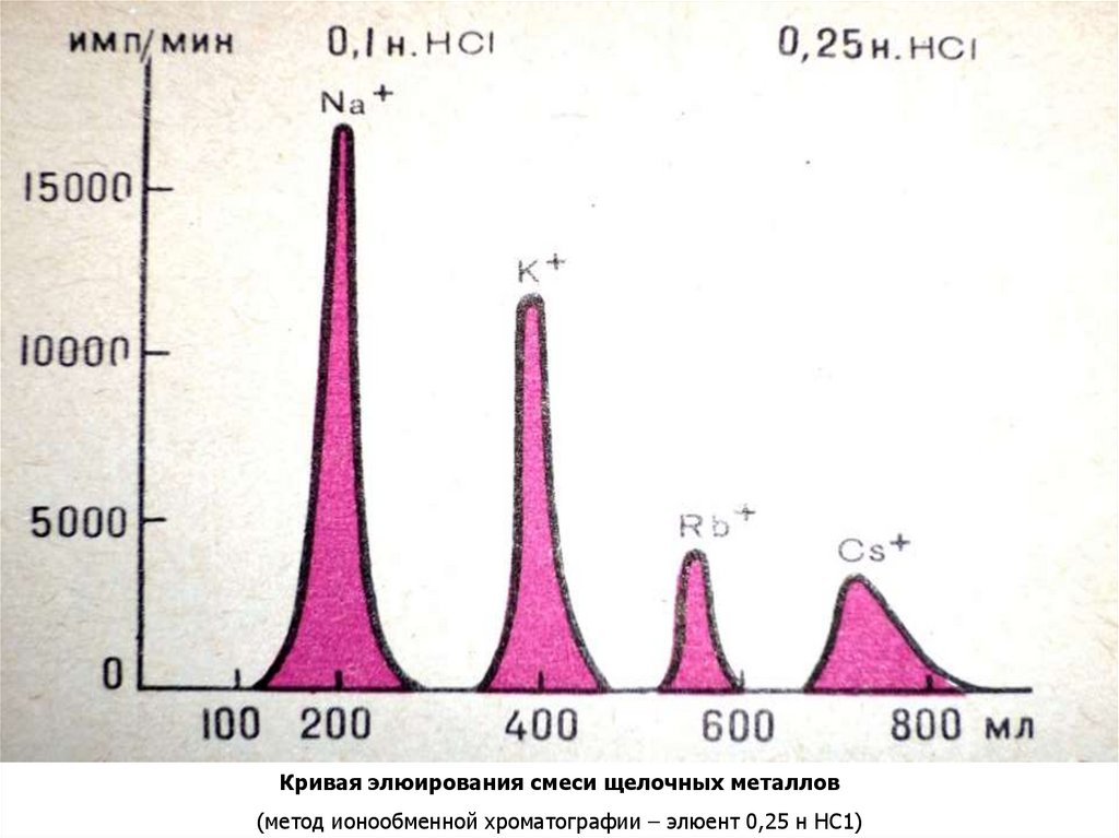 Кривая элюирования смеси щелочных металлов(метод ионообменной хроматографии – элюент 0,25 н НС1)