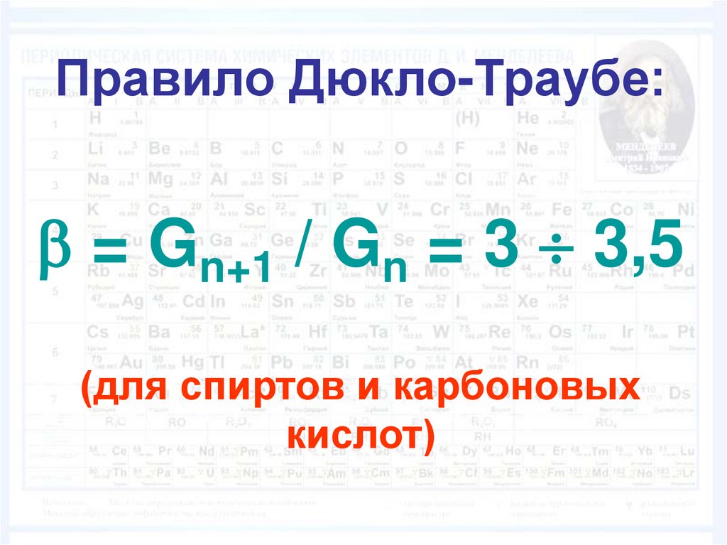 Правило Дюкло-Траубе:= Gn+1 / Gn = 3 3,5