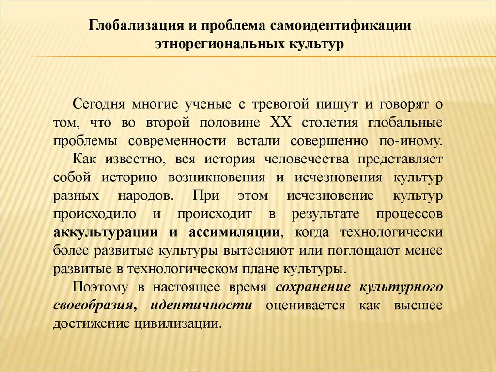 Глобализация и проблема самоидентификацииэтнорегиональных культур