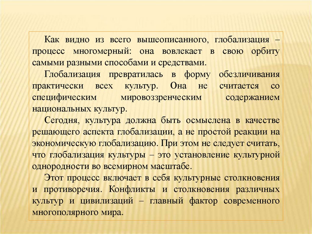 сферы человеческой жизни. Это процесс тотальной интеграции,