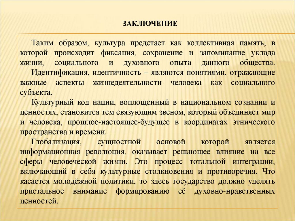 ЗАКЛЮЧЕНИЕТаким образом, культура предстает как коллективная память, в