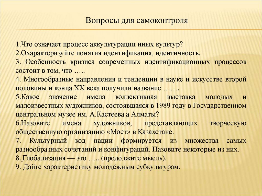 Вопросы для самоконтроля1.Что означает процесс аккультурации иных культур?