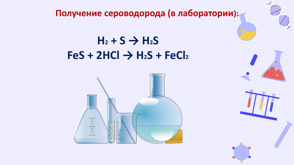 Получение сероводорода (в лаборатории):H2 + S → H 2 S
