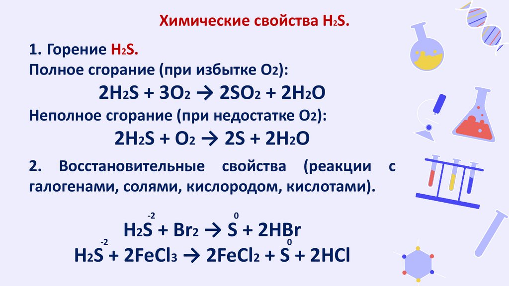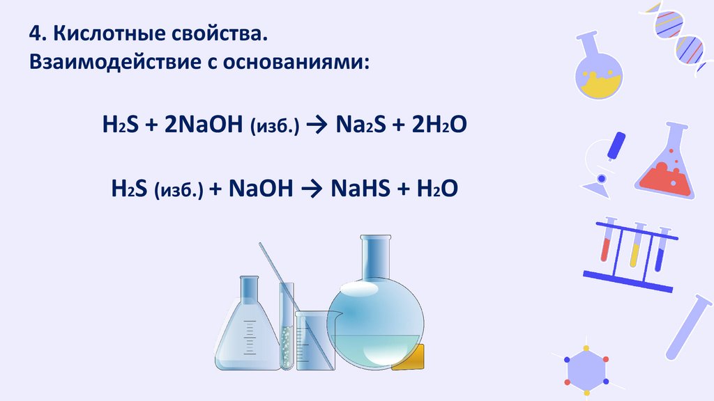 H2S + 2NaOH (изб.) → Na2S + 2H2O