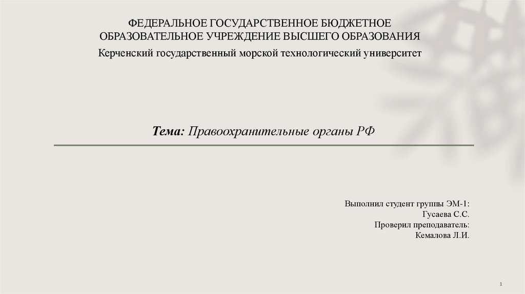 • Органы исполнительной власти, осуществляющие правоохранительные функции:
