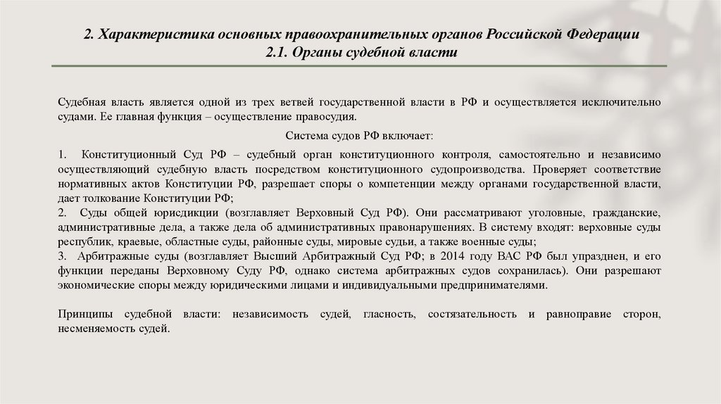 2. Характеристика основных правоохранительных органов Российской Федерации2.1. Органы судебной власти