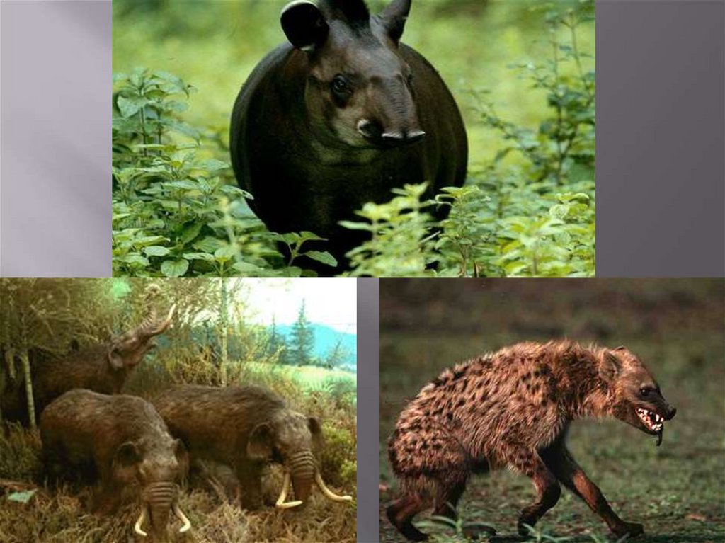 безрогие носороги, антилопы, саблезубые тигры,