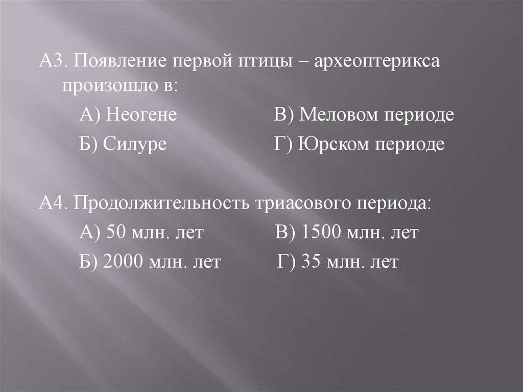 А4. Продолжительность триасового периода: