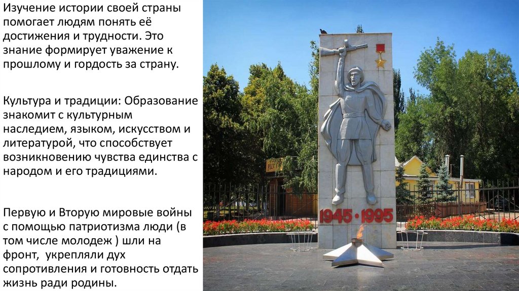 8. Образование: включение в учебные программы курсов по истории и культуре страны, а также стимулирование творческих инициатив.