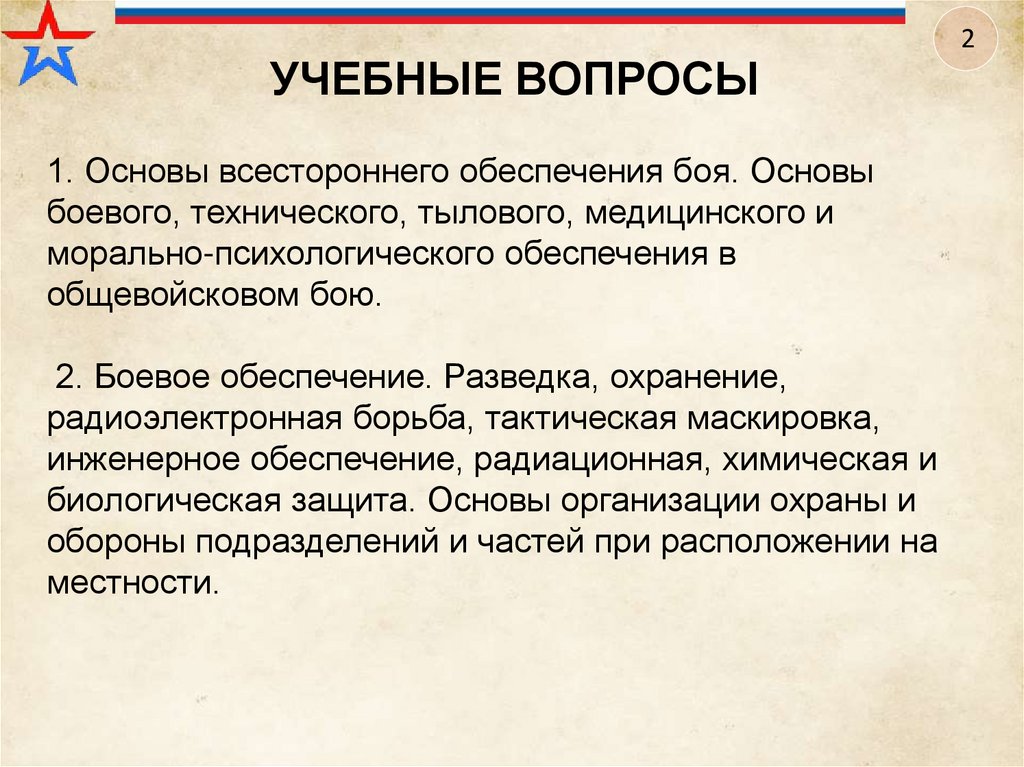 УЧЕБНЫЕ ВОПРОСЫ1. Основы всестороннего обеспечения боя. Основы