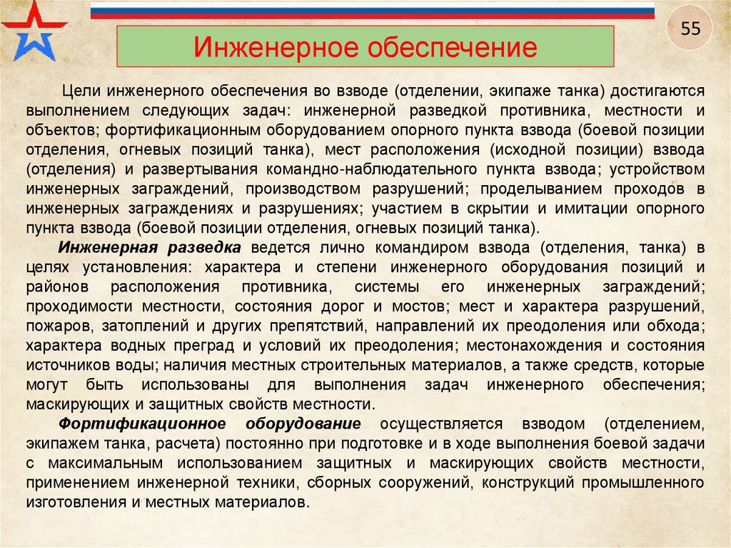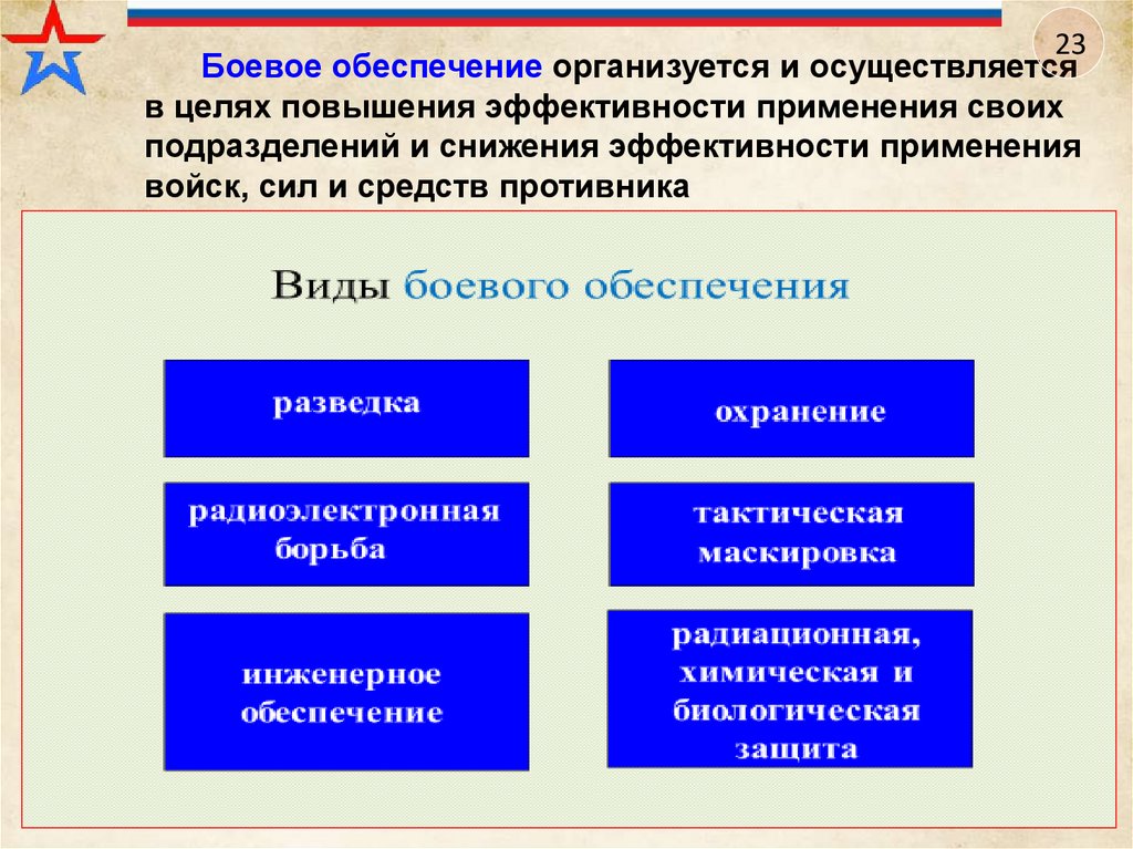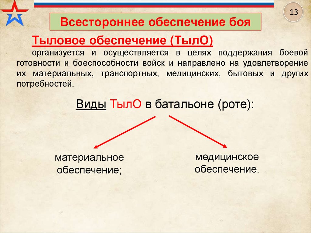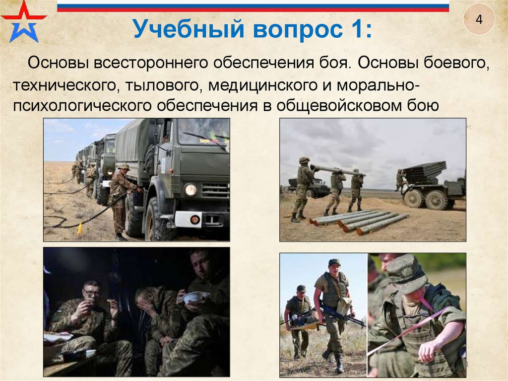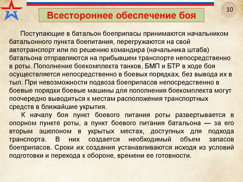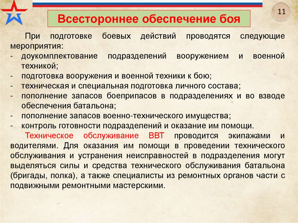 технического, тылового, медицинского и моральнопсихологического обеспечения в общевойсковом бою