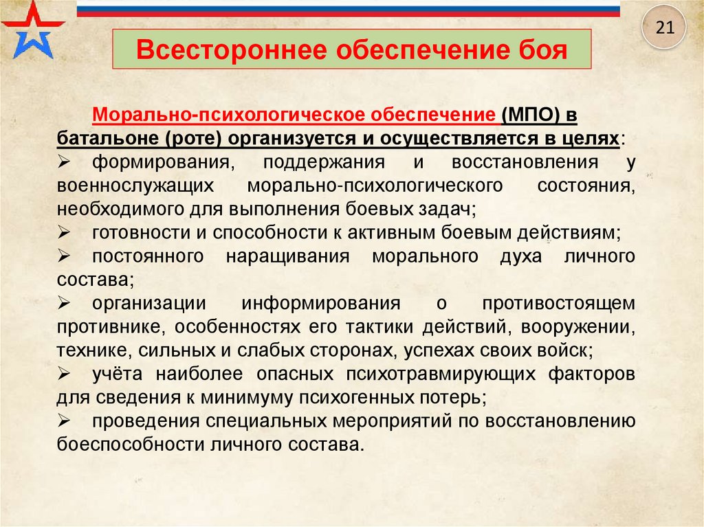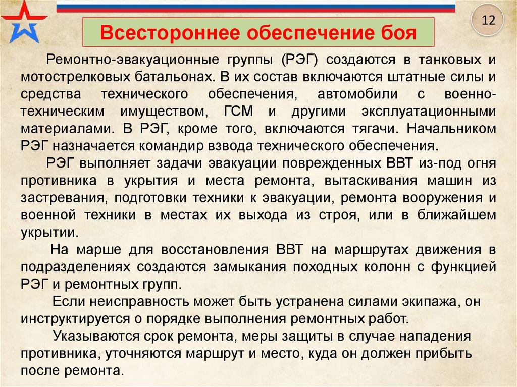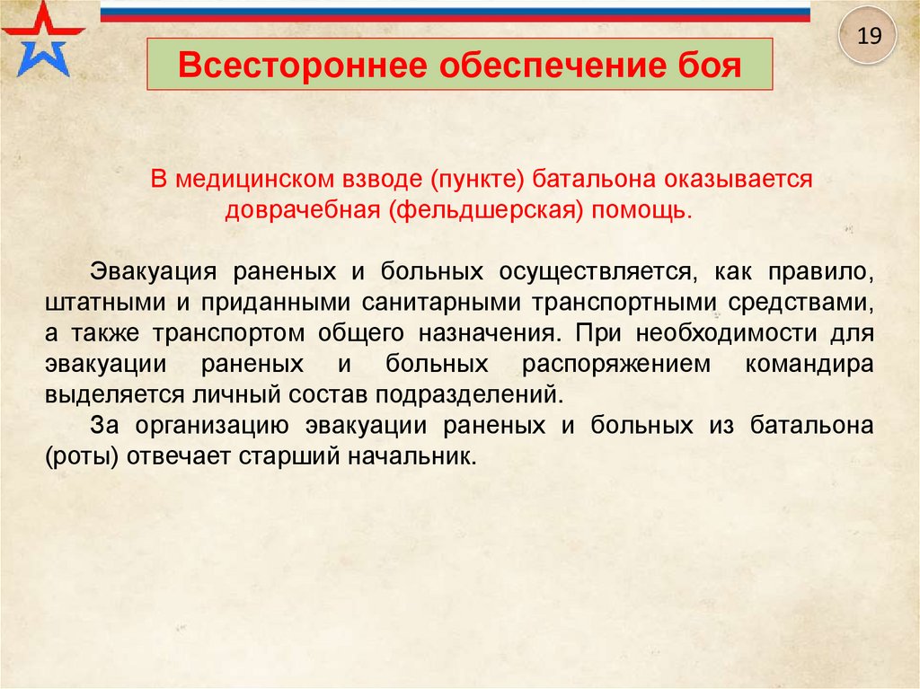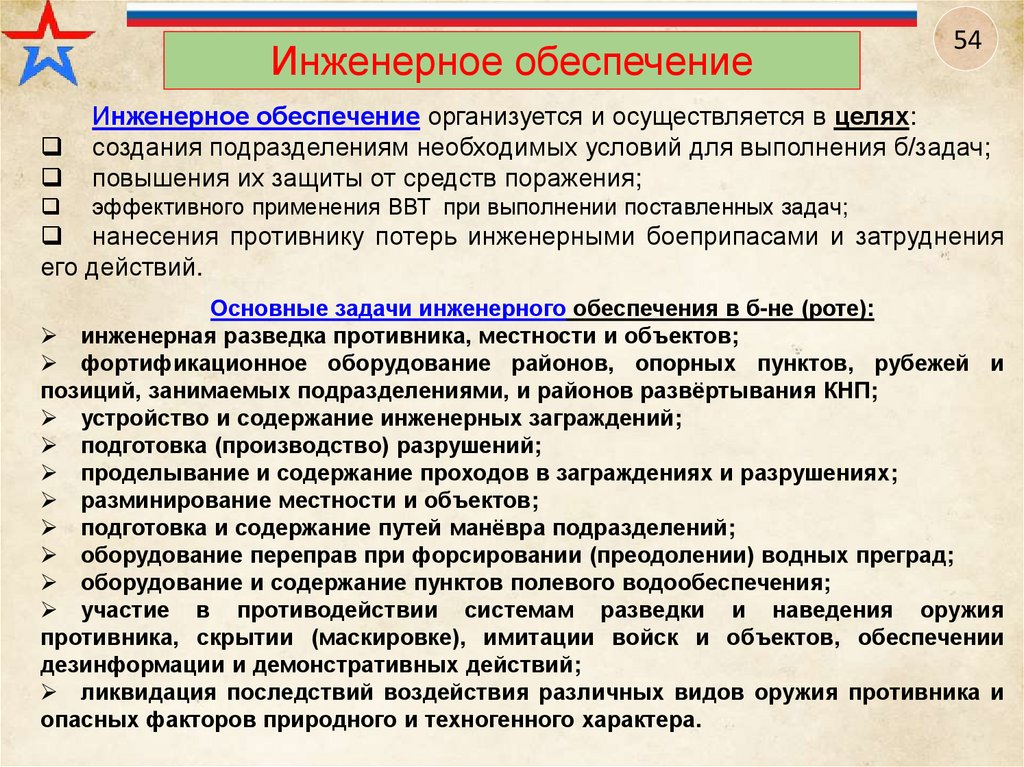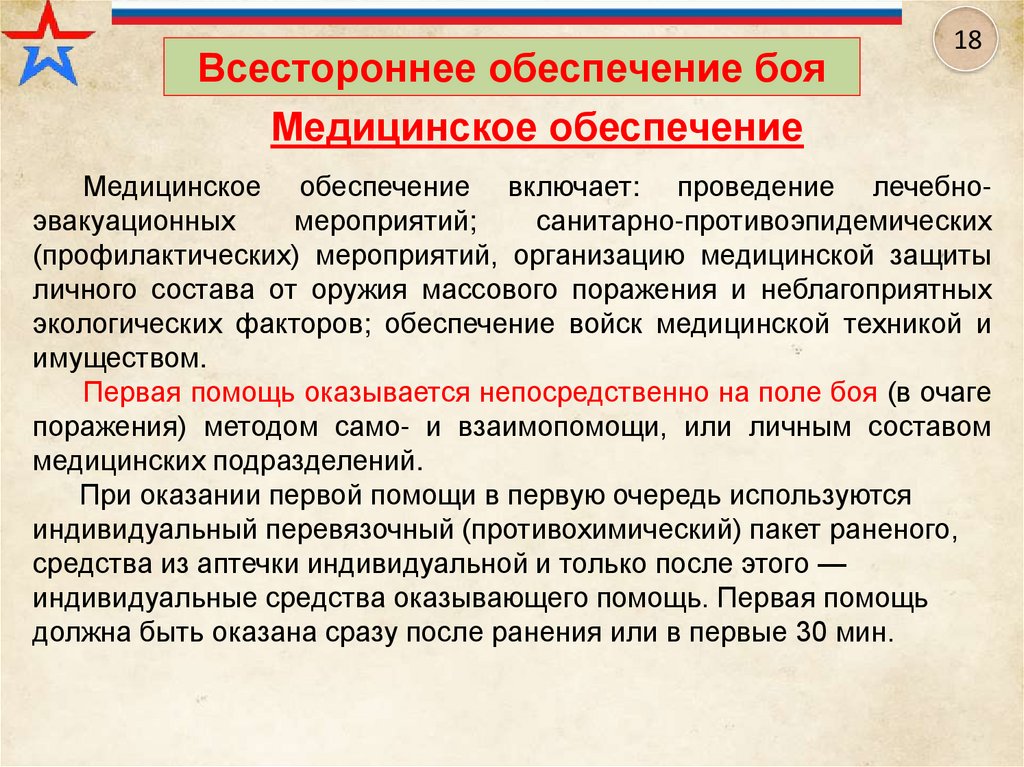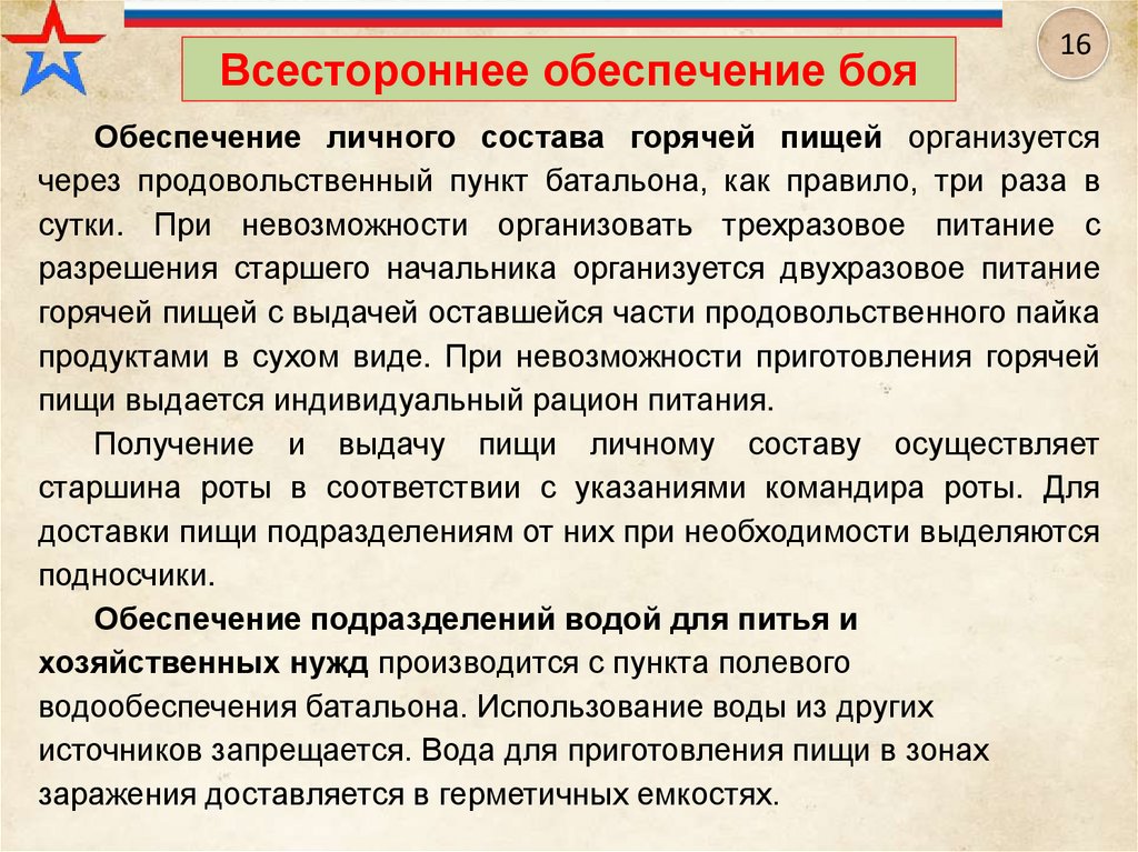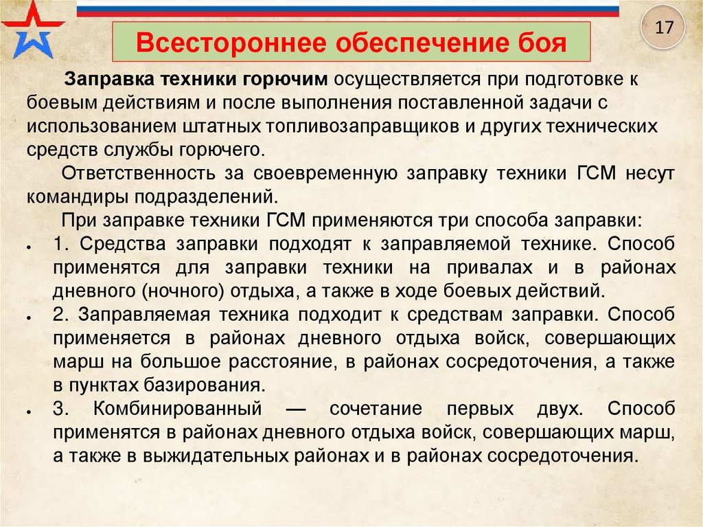 технического, тылового, медицинского и моральнопсихологического обеспечения в общевойсковом бою