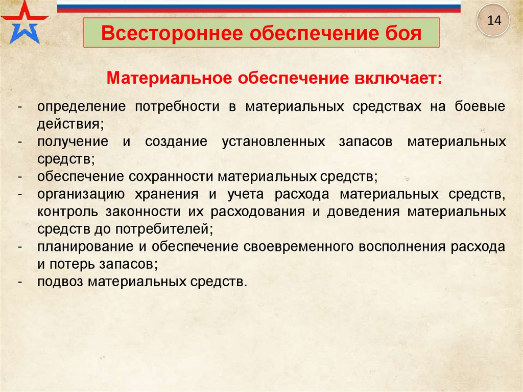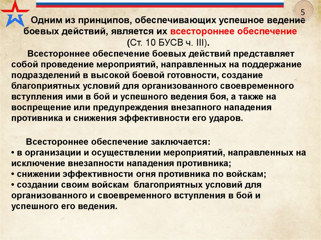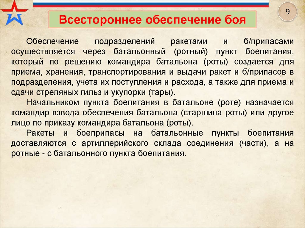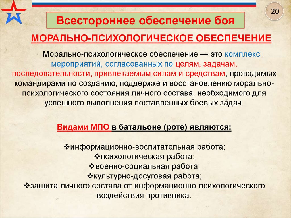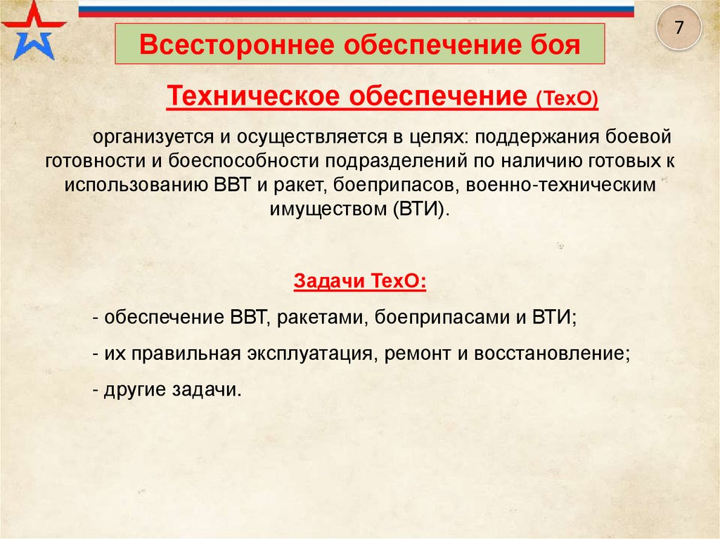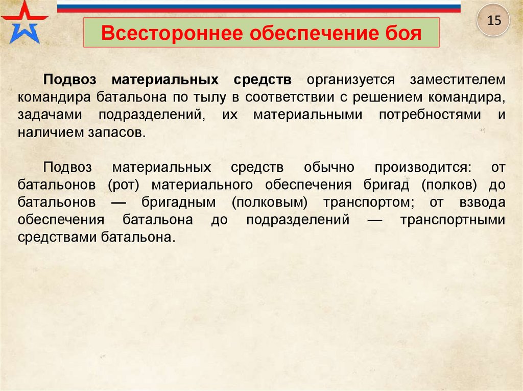 технического, тылового, медицинского и моральнопсихологического обеспечения в общевойсковом бою