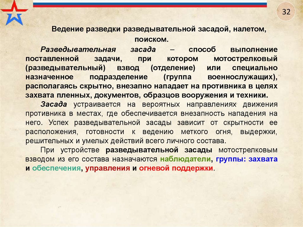 мотострелкового взвода (отделения) в целях поражения живой силы,