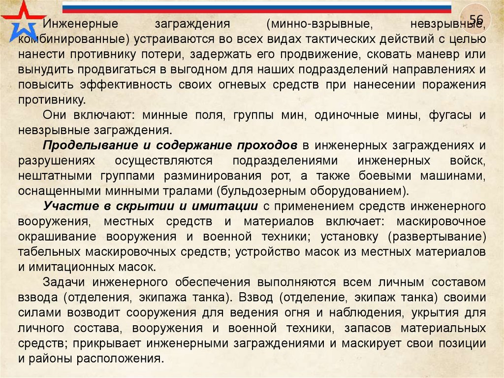 защиты от ОМП; при действиях вне машин быстро занимает их или имеющиеся