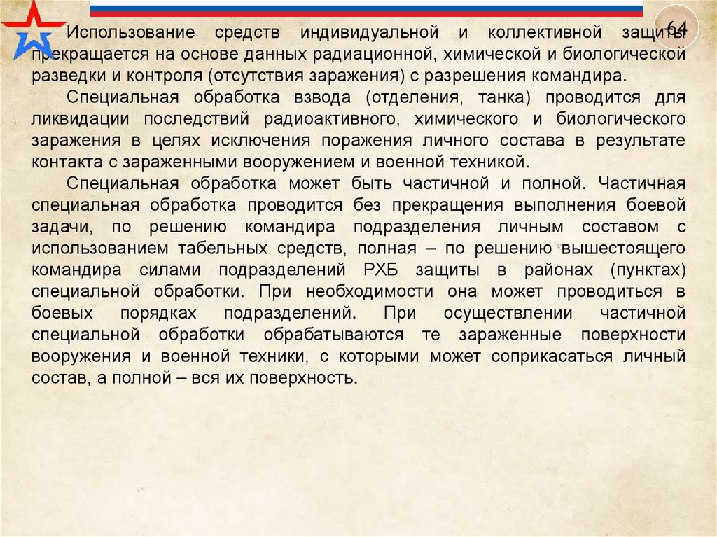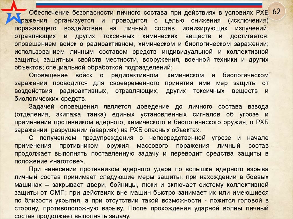 Организация РХБ защиты командиром взвода (отделения, танка)