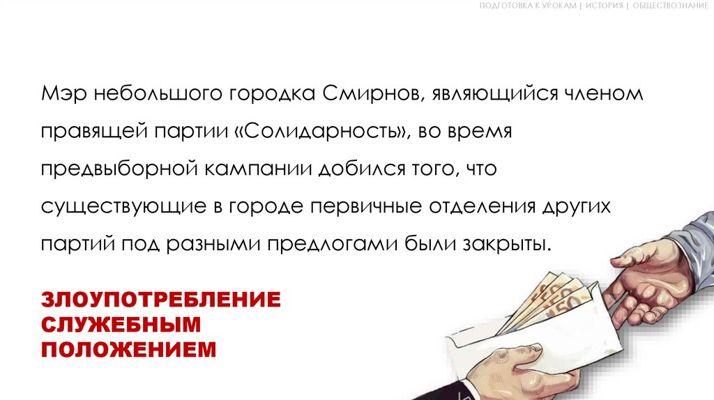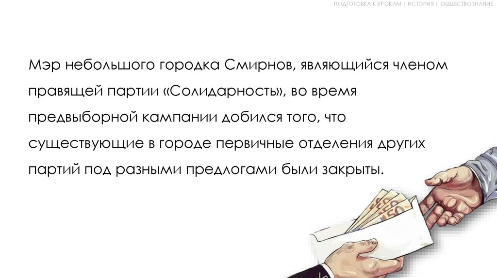 ПОДГОТОВКА К УРОКАМ | ИСТОРИЯ | ОБЩЕСТВОЗНАНИЕМэр небольшого городка Смирнов, являющийся членом