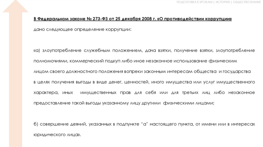 ПОДГОТОВКА К УРОКАМ | ИСТОРИЯ | ОБЩЕСТВОЗНАНИЕВ Федеральном законе № 273-ФЗ от 25 декабря 2008 г. «О противодействии коррупции»