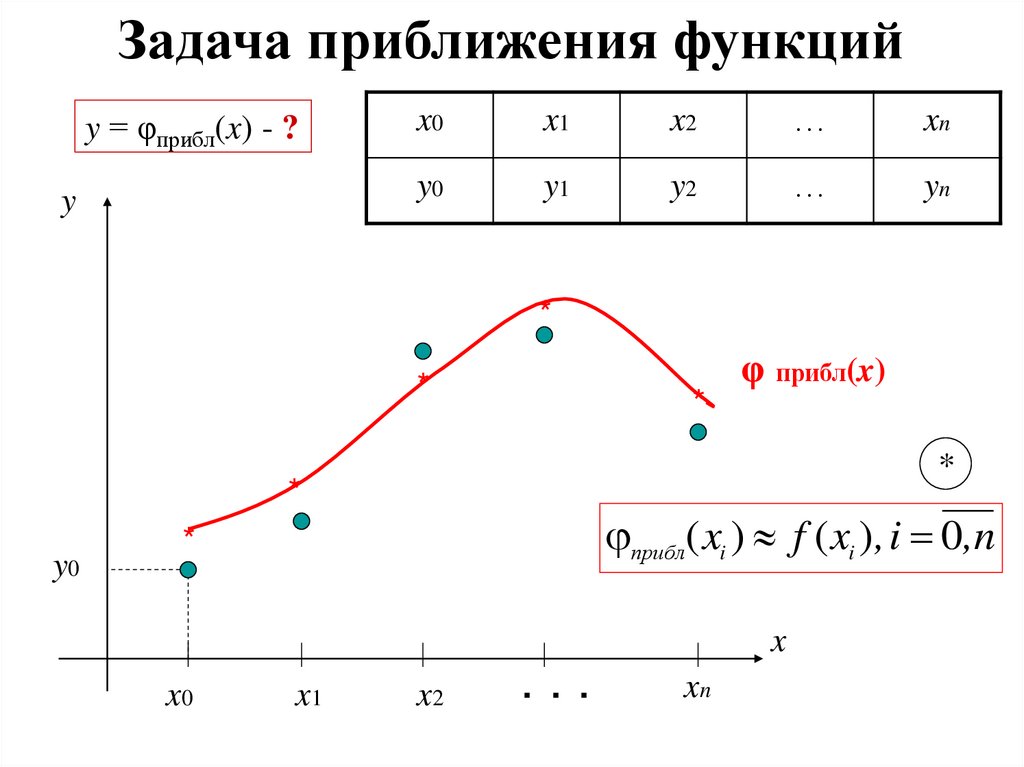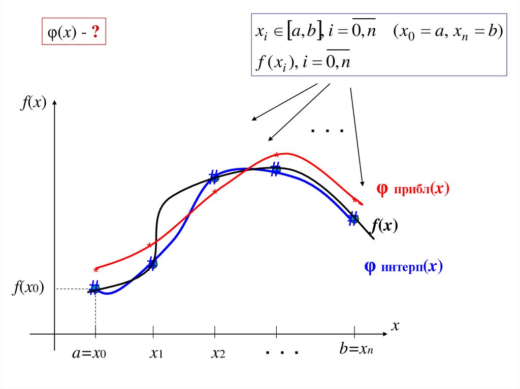 чтобы φ(x) мало отличалась от f(x) в заданных точках (в узлах)