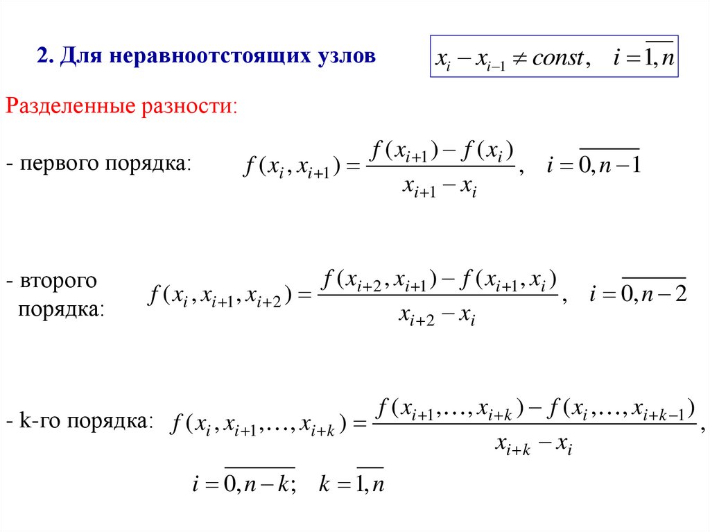 1. Для равноотстоящих узловh xi xi 1 const , i 1, n