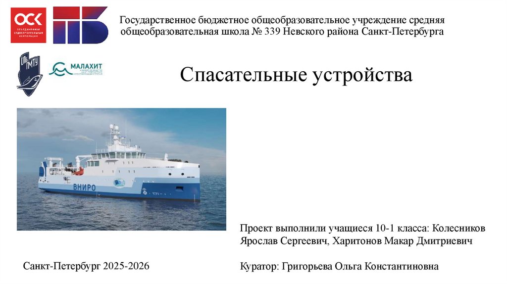• Изучить техническую и рабочую спецификацию спасательных устройств многофункционального научноисследовательского рыболовного судна.
