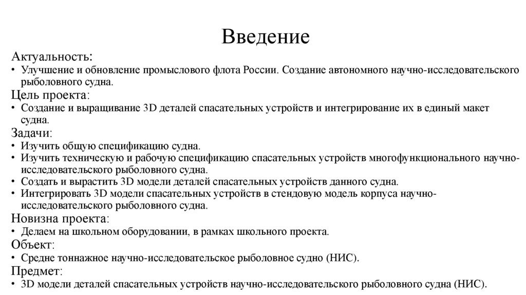• Улучшение и обновление промыслового флота России. Создание автономного научно-исследовательского