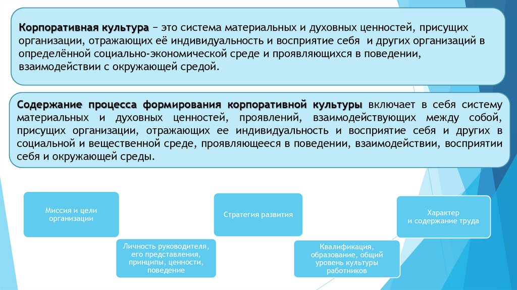 Содержание процесса формирования корпоративной культуры включает в себя систему