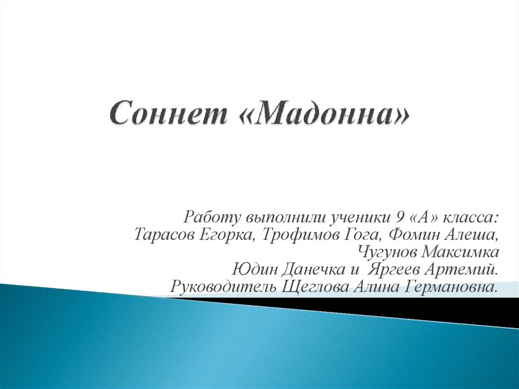 Идея сонета А. С. Пушкина «Мадонна» состоит втом, что на земле можно встретить отголоски