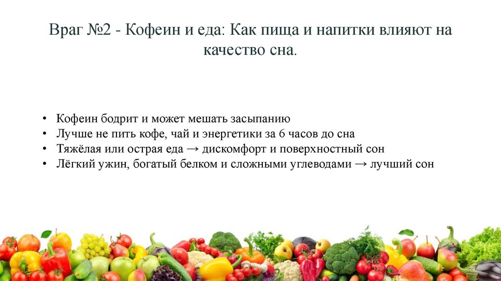 Враг №2 - Кофеин и еда: Как пища и напитки влияют накачество сна.