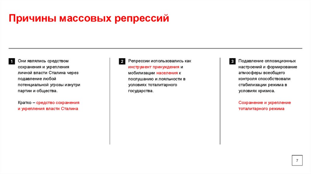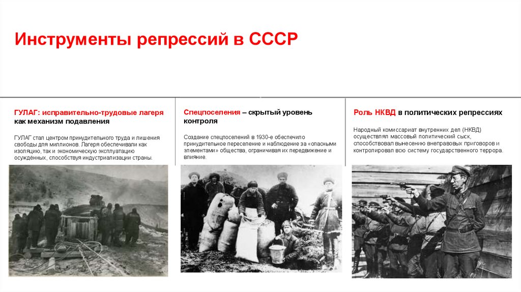 Массовые репрессии приводили к ликвидации целых слоёв общества, фактически