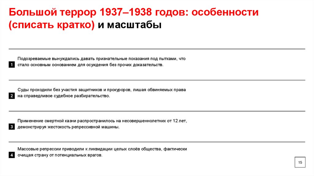 Большой террор 1937–1938 годов: особенности(списать кратко) и масштабы